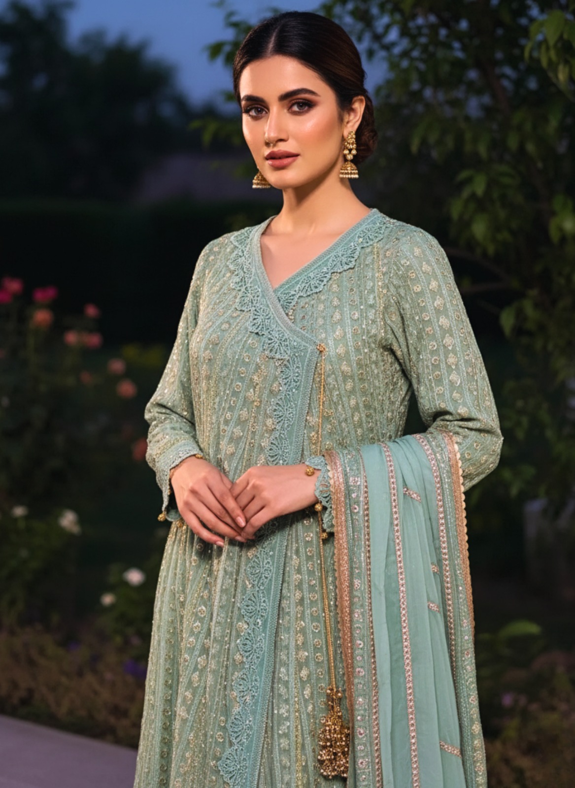 - Zardozi work on neck and Arms