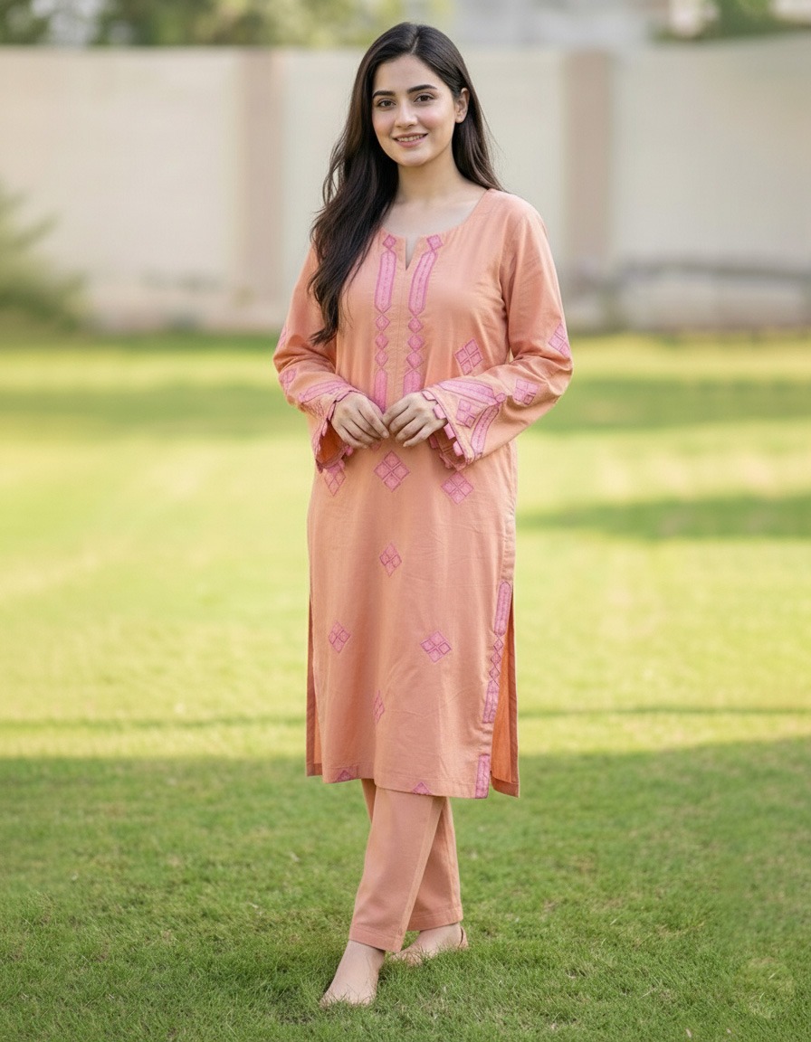 - Festive Embroidered Work on the Front, Back, and Sleeves with Fancy Hand Work, Giving the Outfit a Stunning Look