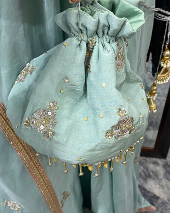 - The pouch can be added to complete the wedding look.